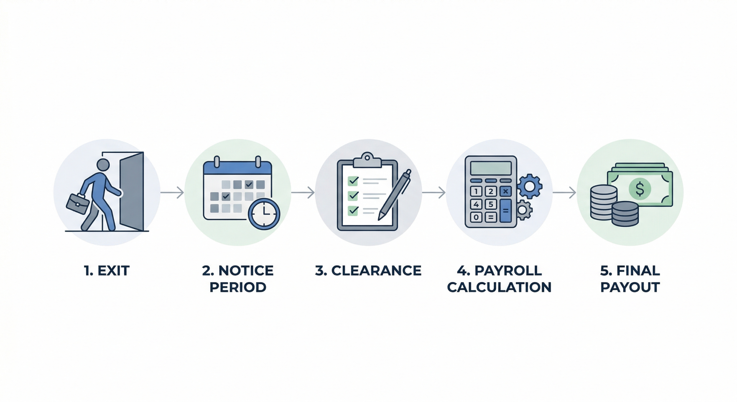 It starts after your last working day and moves step by step until the final payout. The process usually follows this order: exit, notice period, clearance, payroll calculation, and payout. Once your notice period is completed, the company begins clearance by checking if any assets or dues are pending. After clearance, payroll calculates your final earnings and deductions. Once approvals are completed, the final amount is processed and paid.